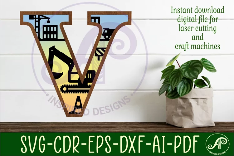 Monogram Letter Svg Laser Cut File Childs Room Decor Layer Letter Design Personalized Sign Svg Laser Cut Nursery Sign Svg Cut File Instant Download Laser Cut File Digger Wall Sign Construction Large Letter Construction Themed Wall Sign