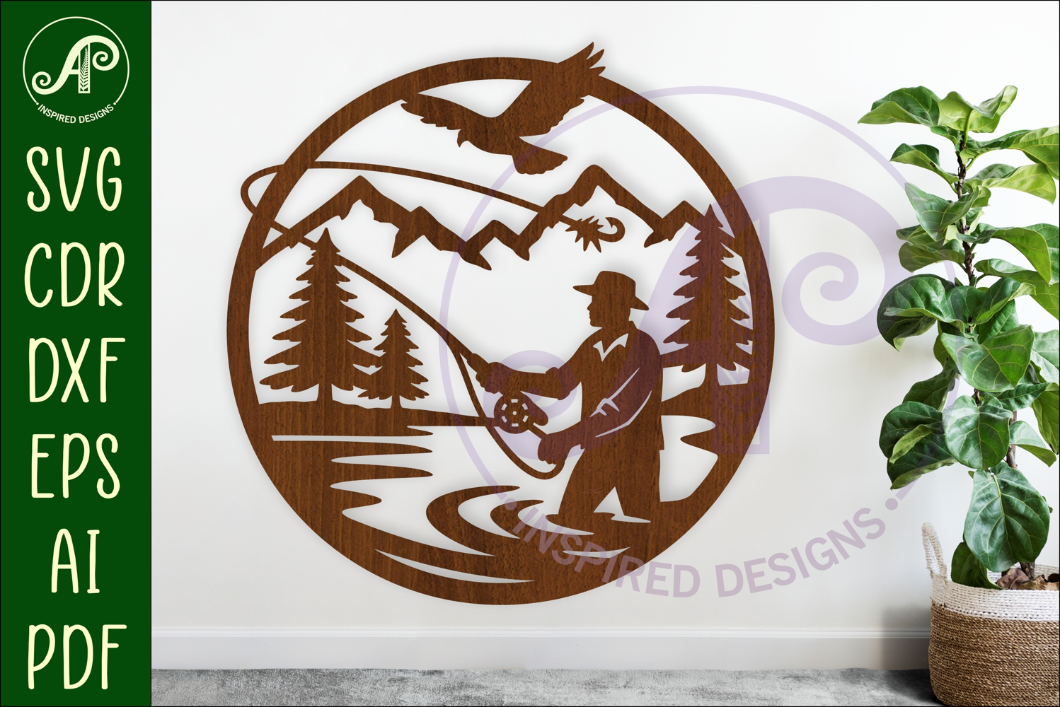 Instant Download Laser Cut Sign Laser Template Cabin Wall Art Laser Cut Forest Home Decor Sign Fly Fishing Mountain Scene Wall Sign Fly Fisherman Wall Sign Laser Cut Fly Fishing Sign Fly Fishing Home Decor Sign Fisherman Wall Art Gift