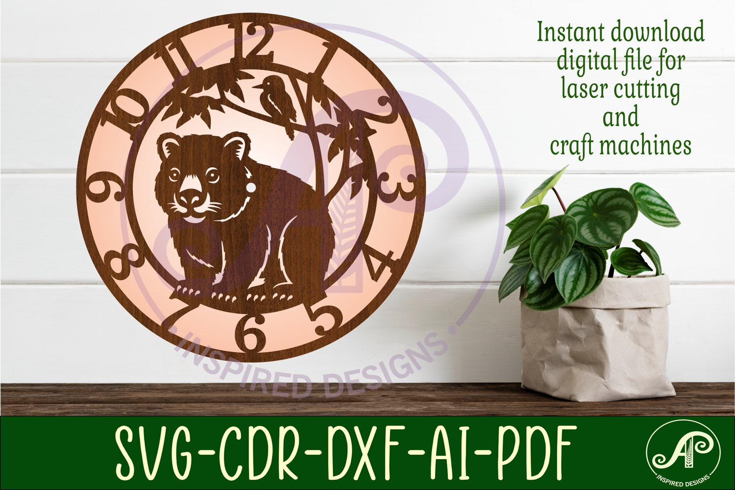 Wombat clock wall clock laser cut file Australian clock example image 1