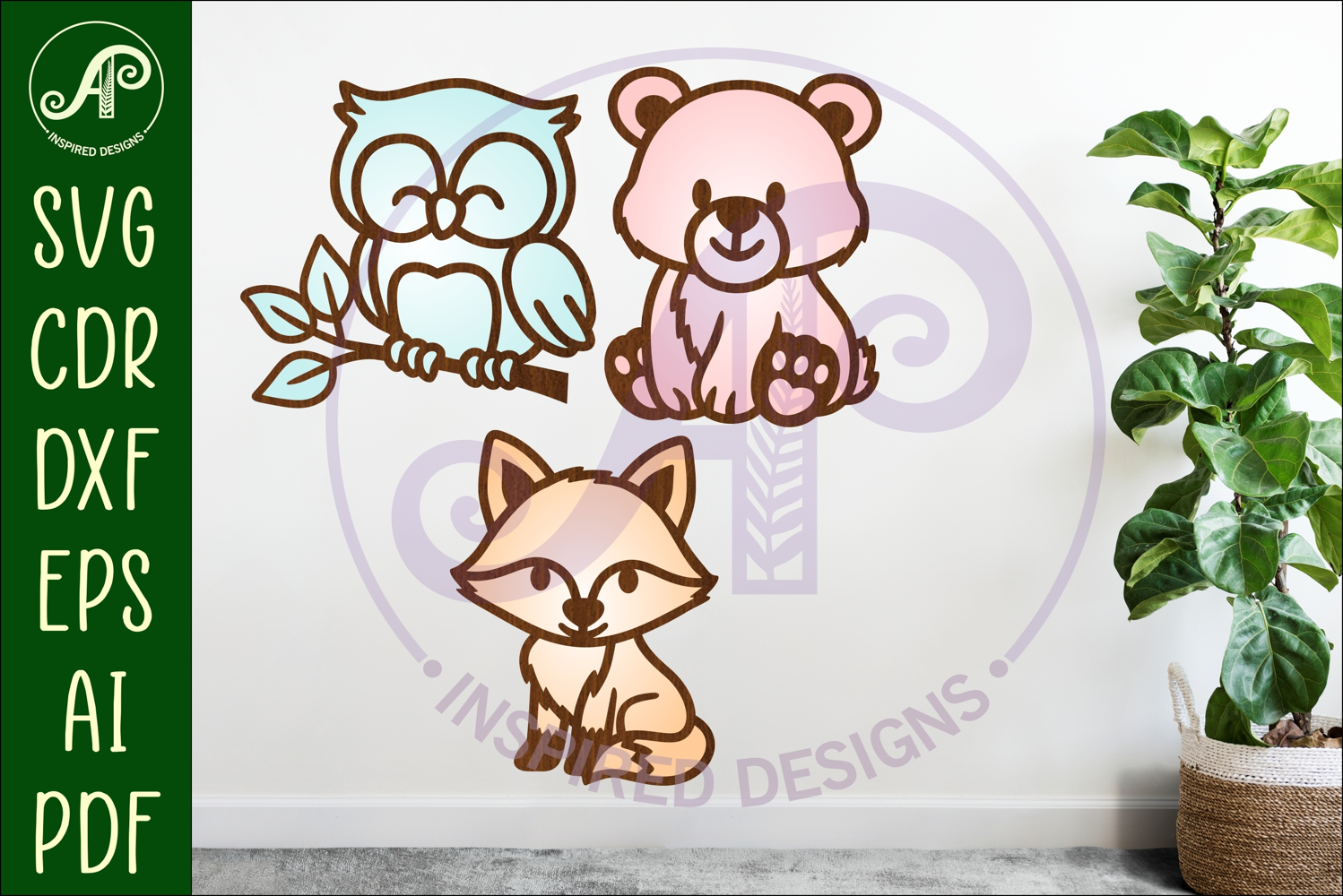 Cute woodland animals, SVG laser cut file d1 example image 1