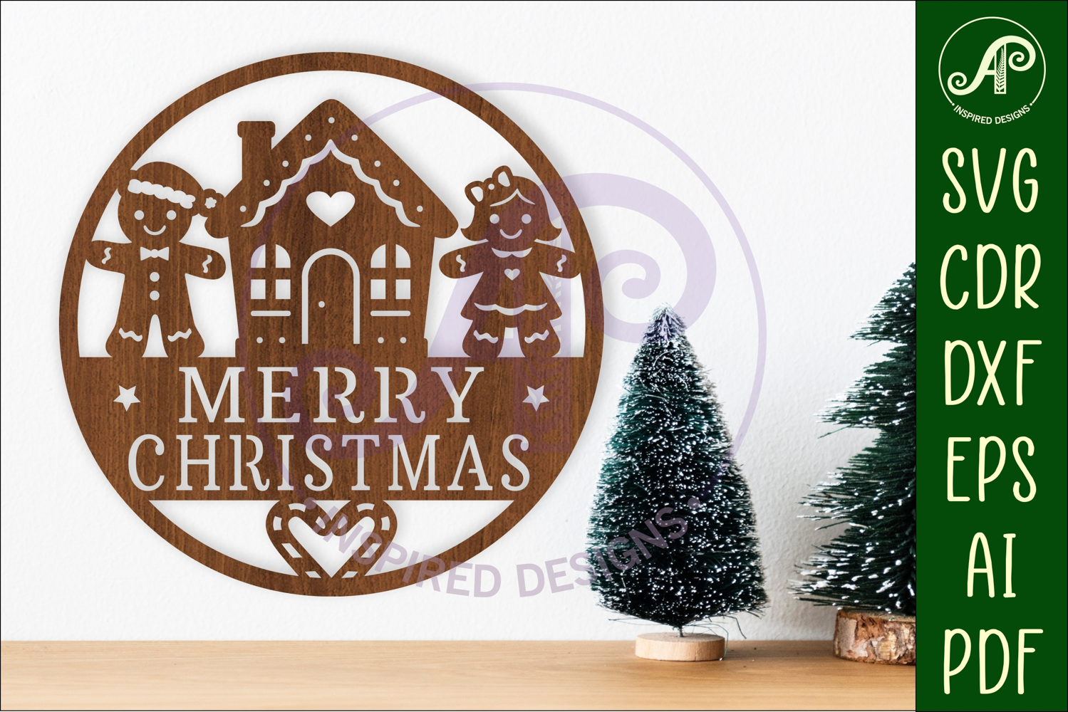 Gingerbread Merry Christmas wall sign svg laser cut example image 1