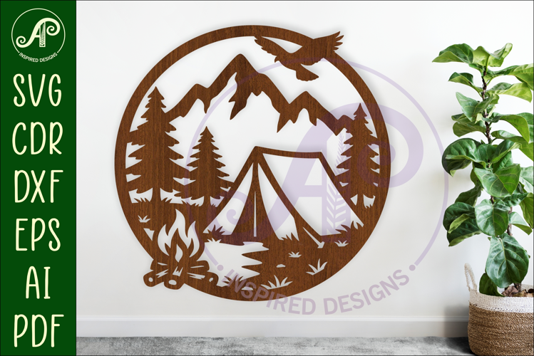 Vector Cutting File Laser Cut Template Laser Cut Wall Sign Wall Art Sign Laser Cut Cutting Machine Sign Svg Camping Mountains And Forest Wall Sign Camping Laser Cut Wall Art Campsite Laser Cut Sign Tent And Mountains Sign Campfire Wall Sign
