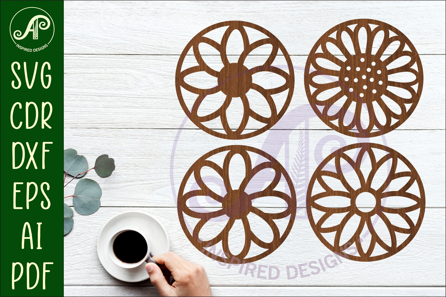 Vector Cutting File Laser Cut Template Coaster Cut Files Flower Coasters Floral Coasters Funny Coasters Laser Cut Coasters Cut Out Coaster Designs Themed Coaster Design Flower Cut Outs Coasters