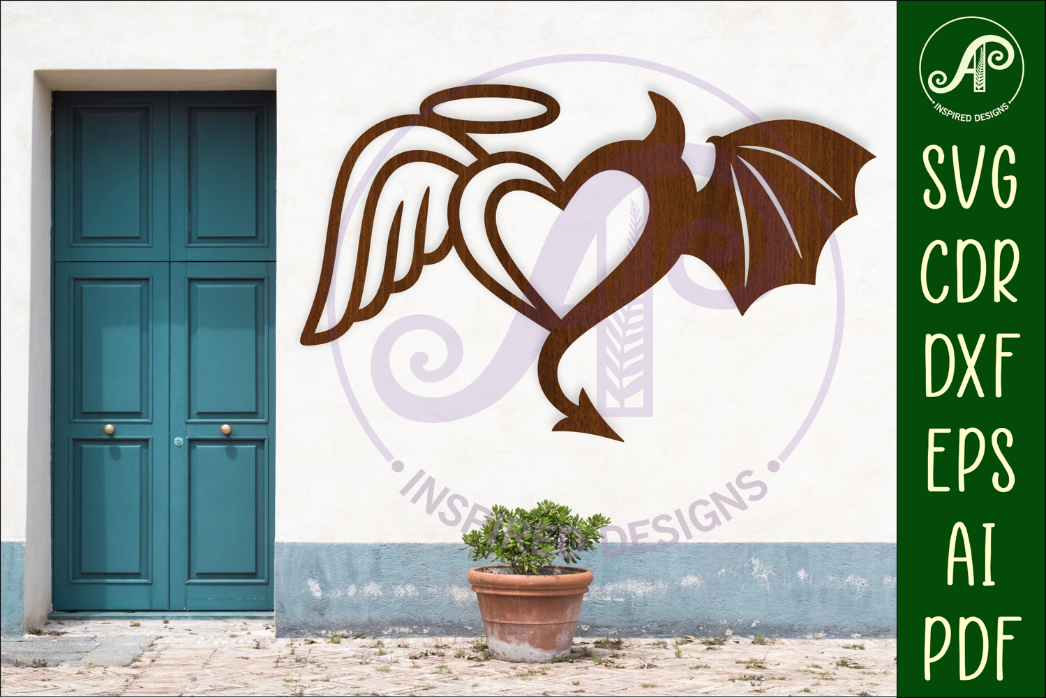 Angel and Devil Heart wall sign svg laser cut example image 1