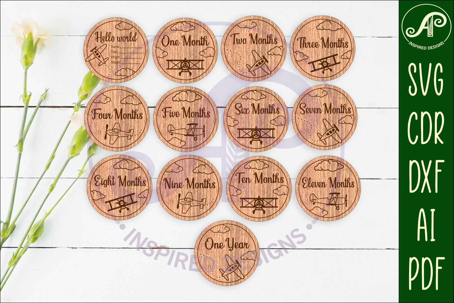 Similar Design Products to Vintage Plane themed Baby monthly milestone discs SVG laser