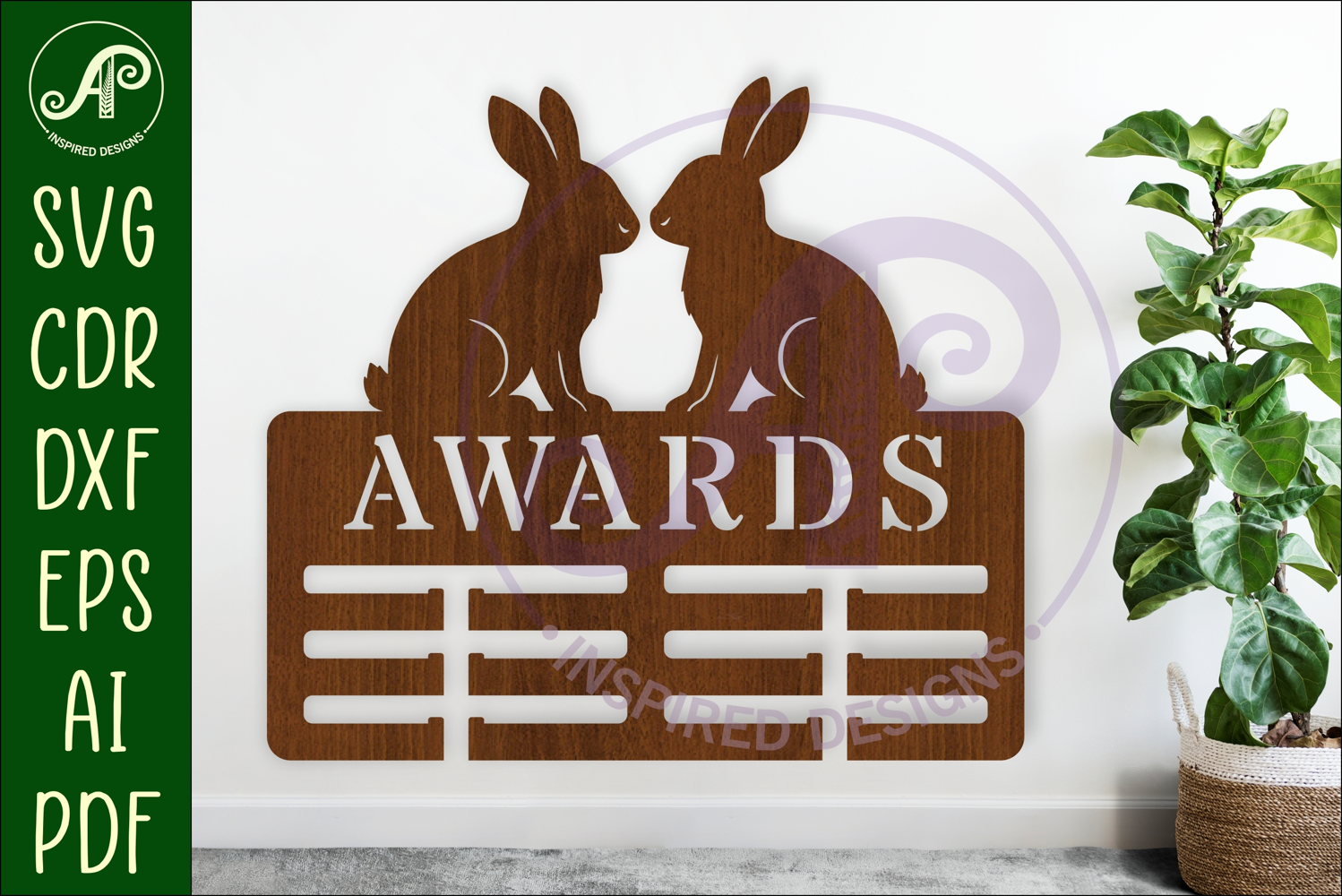 This digital download features a rabbit show medal holder sign for door or wall hanging. This is a SVG Laser Cut Files for laser machines, CNC routers and other craft machines. in DXF, AI, CDR and PDF formats too.
