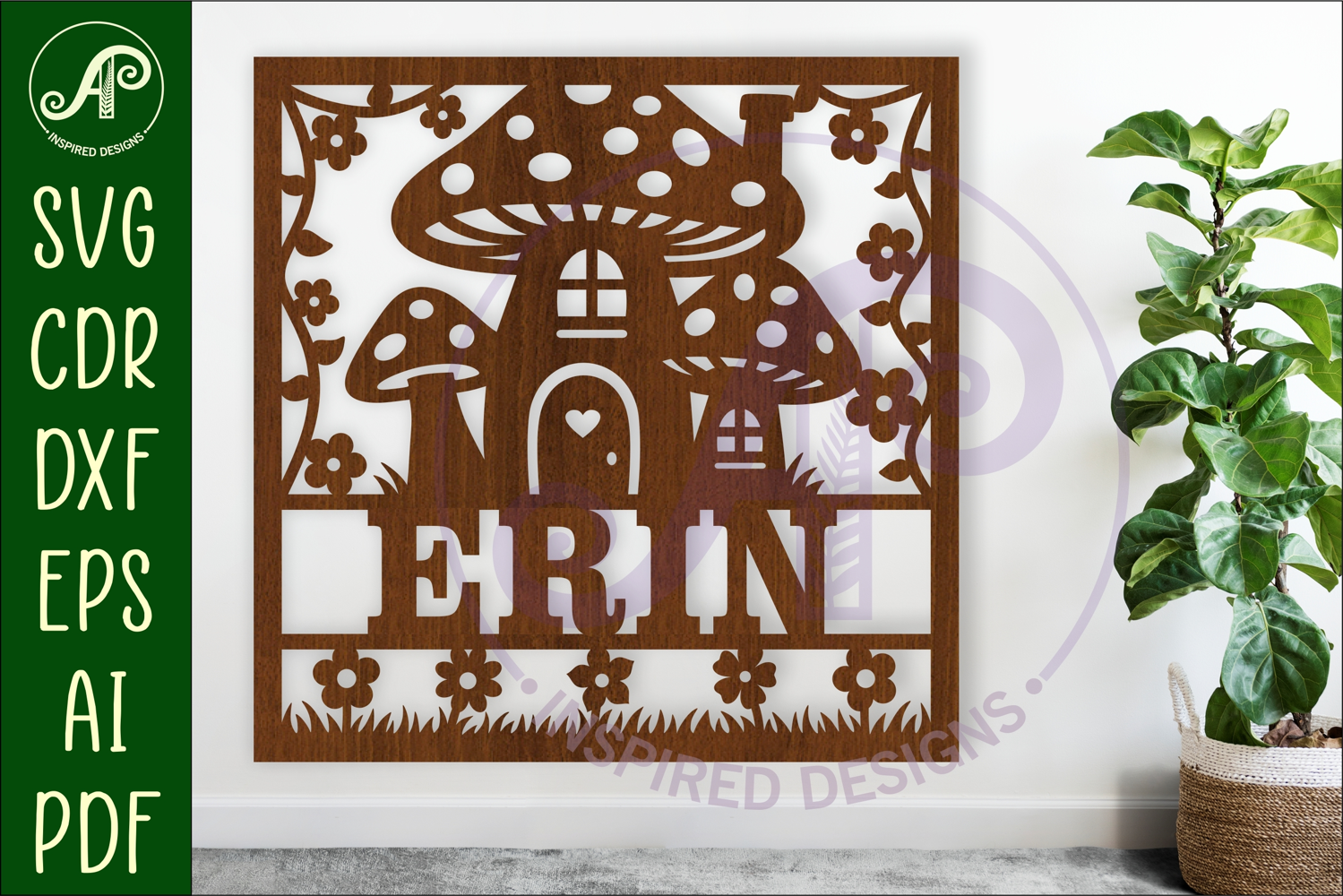 Glowforge File Svg Laser Cut Wall Sign Laser Cut Name Sign Wall Art Sign Laser Cut Cutting Machine Sign Svg Fairy House Name Sign Mushroom House Personalized Design Fairy House Personalized Design Mushroom House Card Design Fairy Garden Themed Design