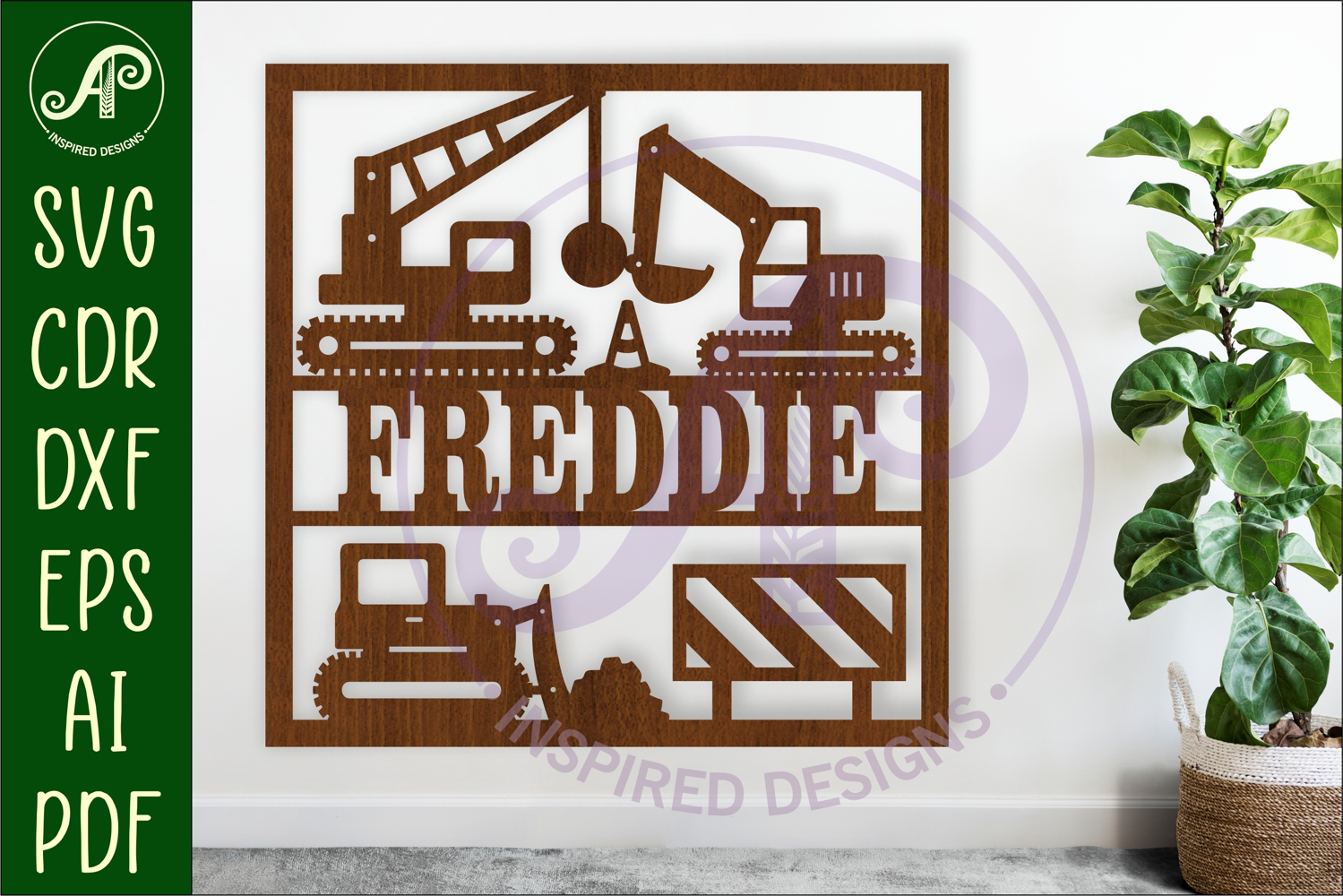 Glowforge File Svg Laser Cut Wall Sign Construction Name Sign Laser Cut Name Sign Wall Art Sign Laser Cut Cutting Machine Sign Svg Diggers Name Sign Construction Scene Wall Sign Personalized Construction Decor Digger Card Design