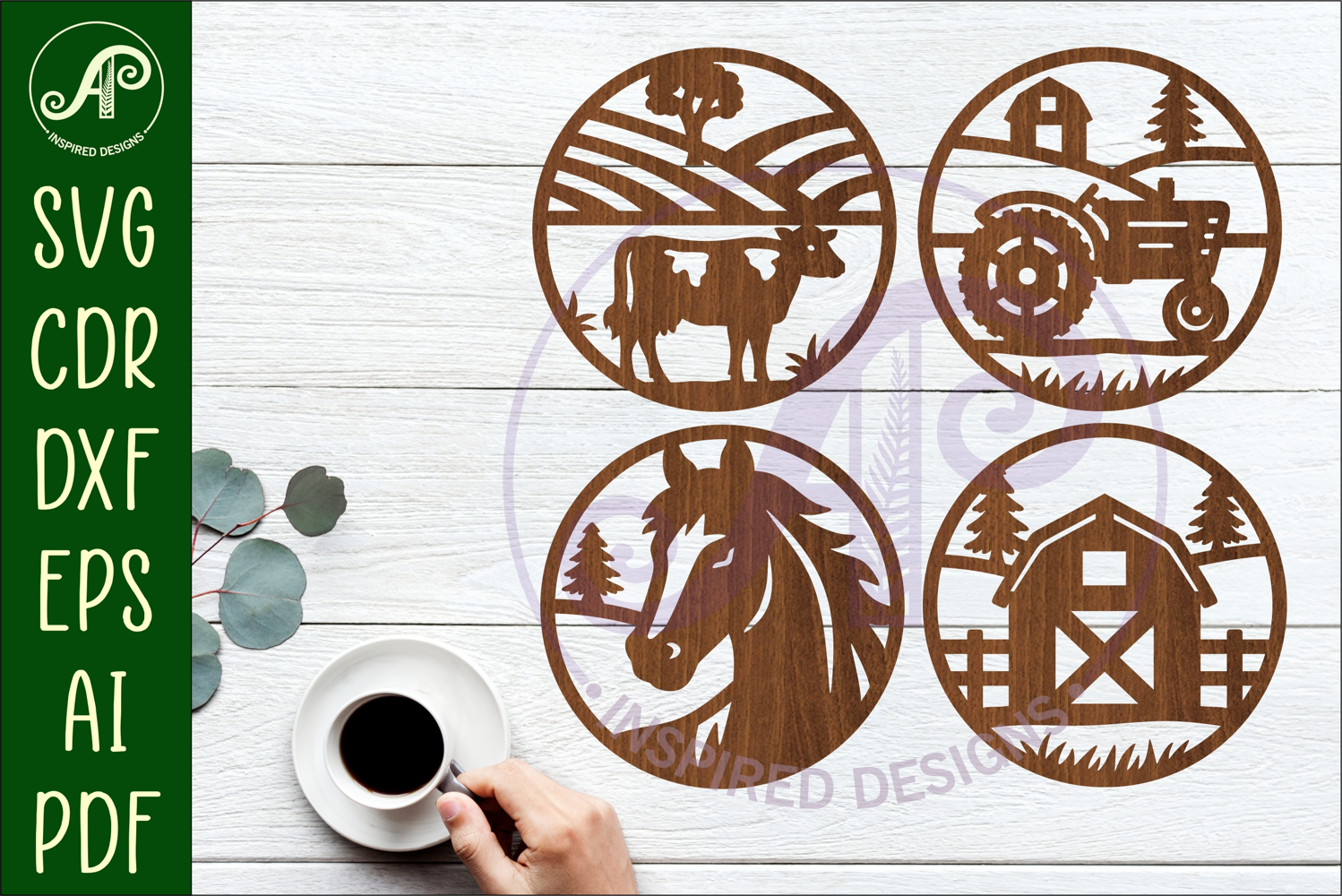 Vector Cutting File Laser Cut Template Coaster Cut Files Farmhouse Coasters Laser Cut Coasters Cut Out Coaster Designs Themed Coaster Design Farming Coasters Farm Life Coasters On The Farm Circle Designs