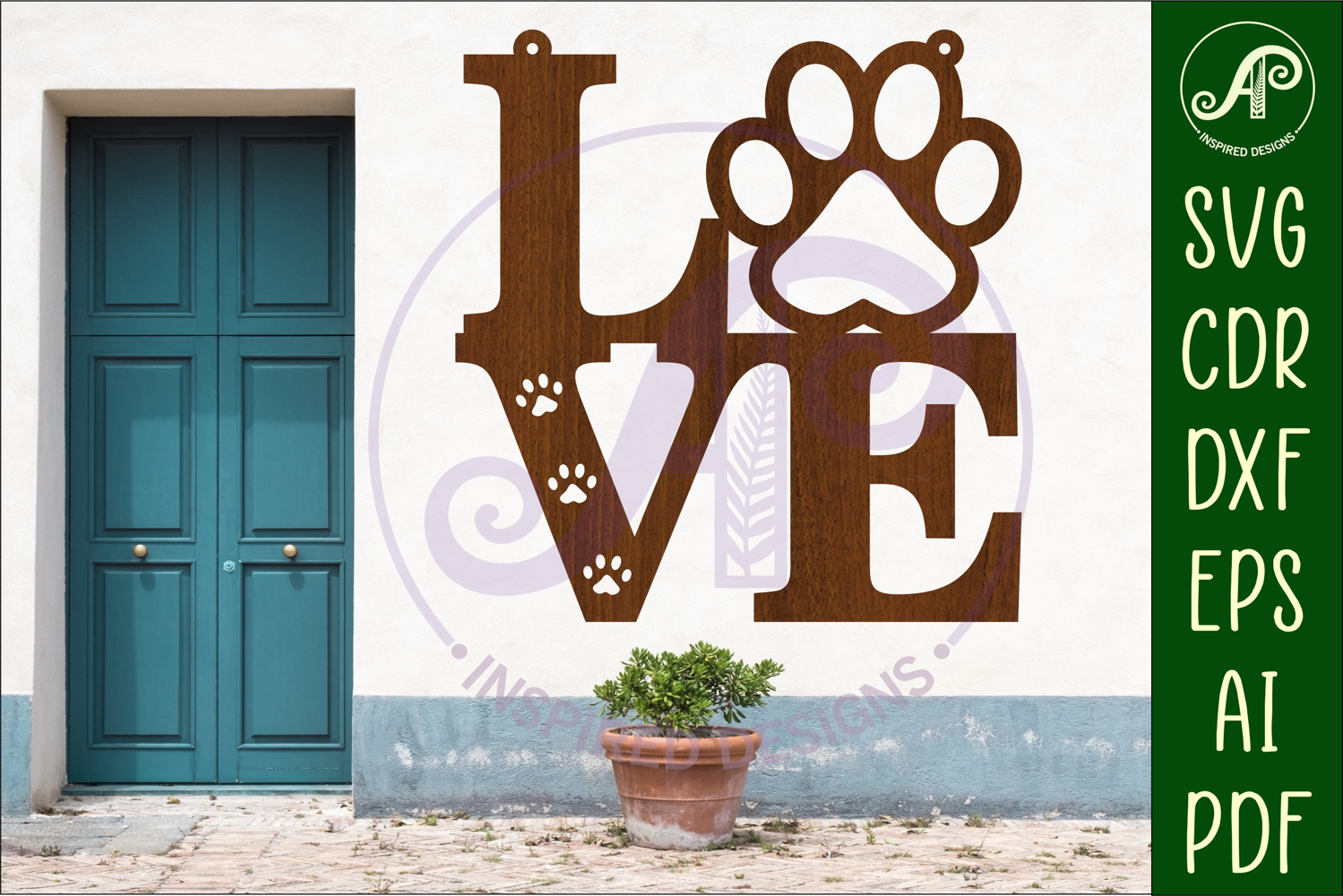 Vector Cutting File Laser Cut Template Handmade Wall Art Wall Art Sign Laser Cut Cutting Machine Sign Svg Pets Love Wall Sign Home Decor Home Word Love Word With Paw Print Love Word Pet Theme Sign Animal Lovers Wall Sign