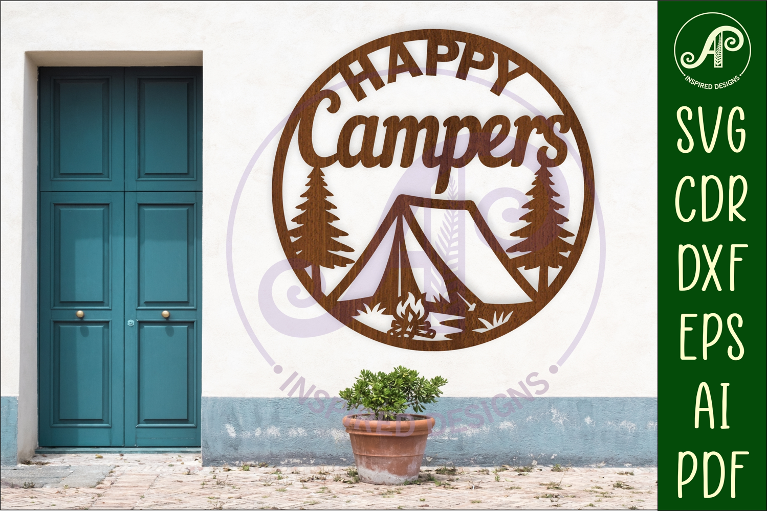 Vector Cutting File Laser Cut Template Laser Cut Sign Outdoor Decor Svg Wall Art Sign Laser Cut Cutting Machine Sign Svg Happy Campers Wall Sign Caravan Theme Heart Camping Theme Decor Happy Campers Tent Decor