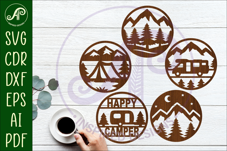 Bring a Farm touch to your home with these camper, camping themed cut out coaster designs :)