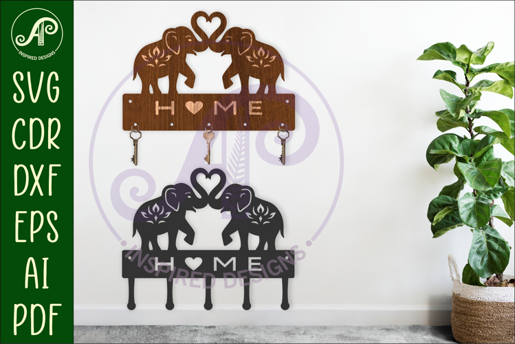 Vector Cutting File Laser Cut Template Elephant Home Decor Key Holder Template Metal Key Holder Design Laser Cut Key Holder Design Metal Cut File Elephant Key Holders Elephants Key Hanger Elephant Holder Laser Cut