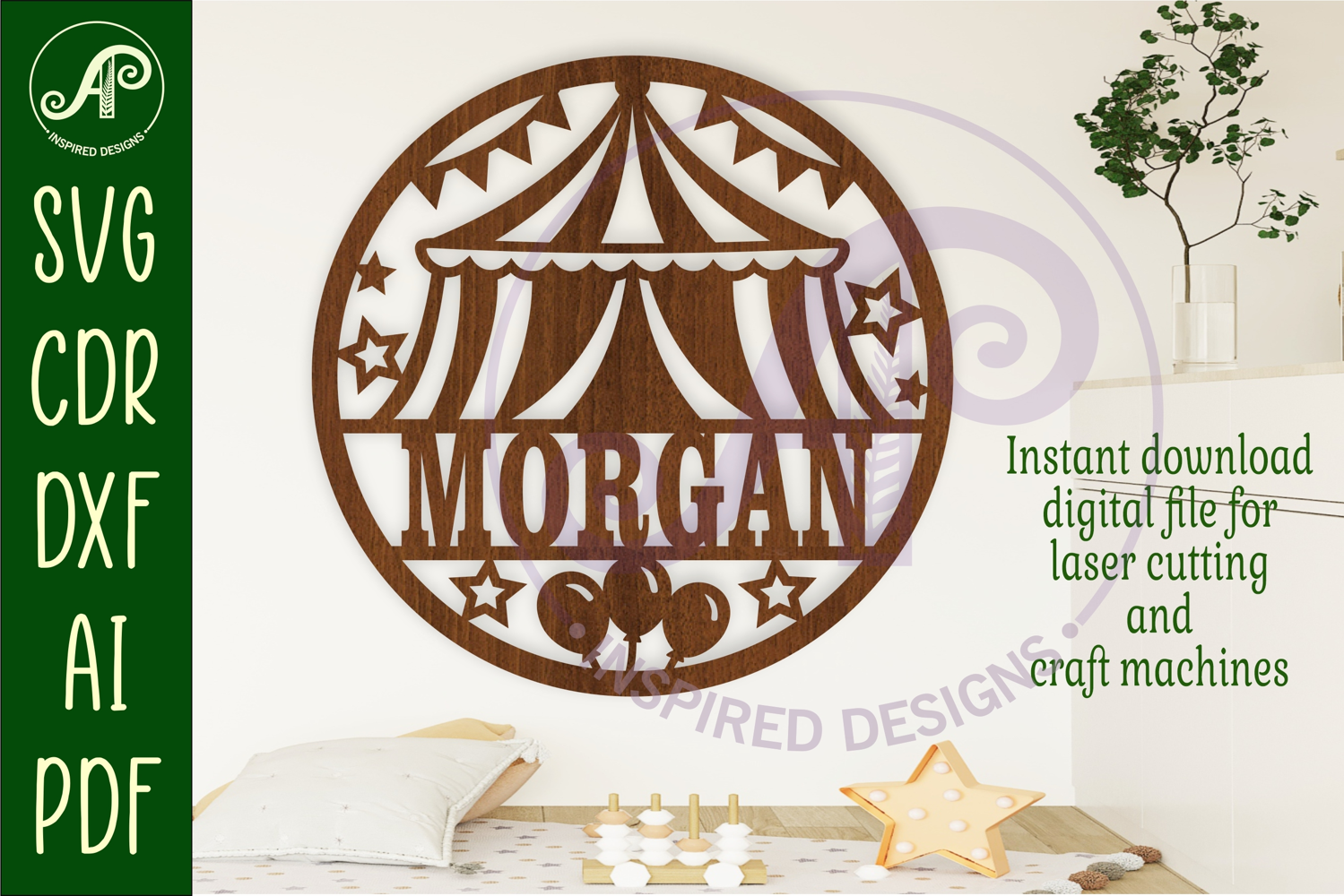 Baby Room Sign Glowforge File Svg Laser Cut Wall Sign Laser Cut Name Sign Wall Art Sign Laser Cut Cutting Machine Sign Svg Circus Name Sign Circus Personalized Sign Circus Nursery Decor Sign Circus Tent Sign