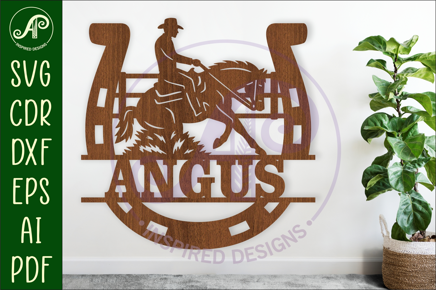 Horse Shoe Reining Name sign svg laser cut template example image 1