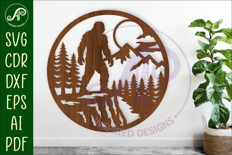 Similar Design Products to Bigfoot Moonlight Forest Wall Sign SVG Night Sasquatch Laser