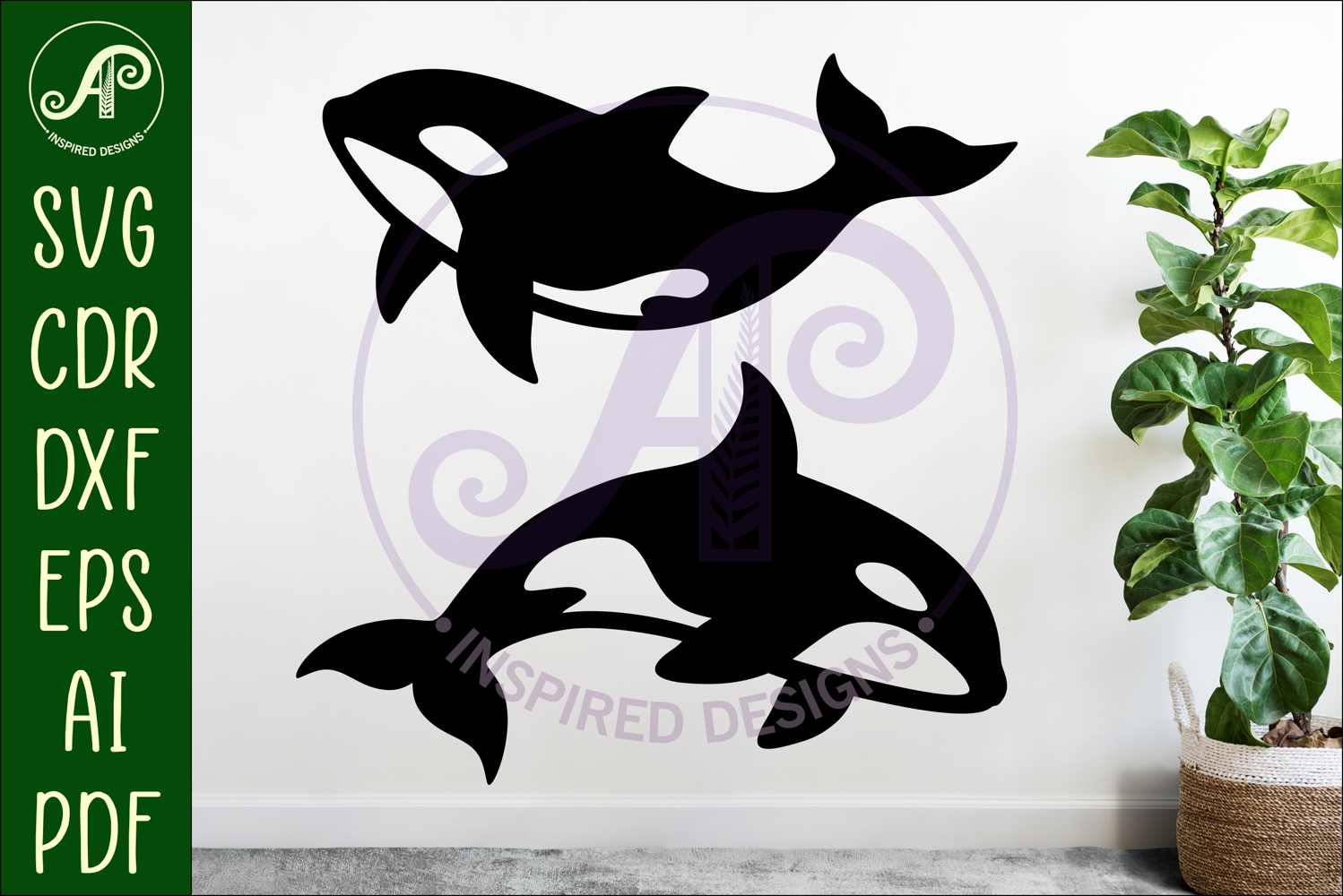 Orca Whales silhouette laser cut outs SVG files example image 1
