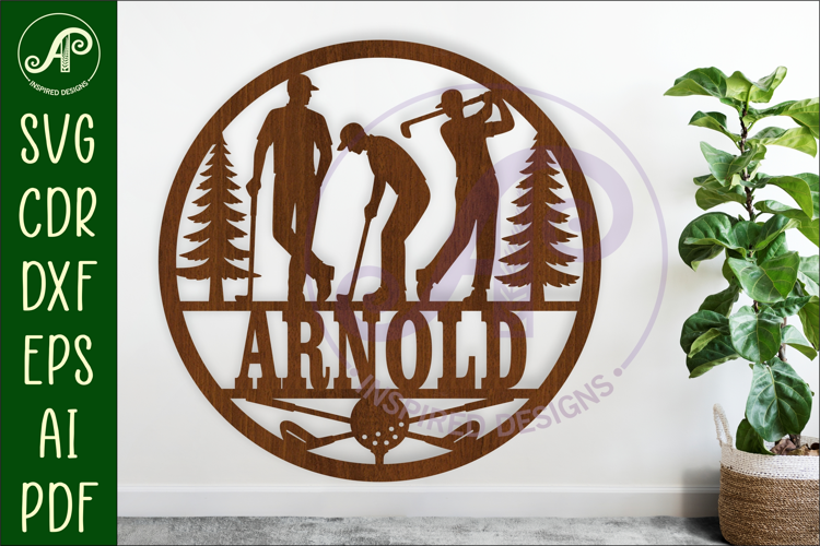 Glowforge File Svg Laser Cut Wall Sign Golfer Name Sign Laser Cut Name Sign Wall Art Sign Laser Cut Laser Cut Golf Svg Golf Wall Art Svg Personalized Golf Gift Golf Decor File Male Golfer Silhouette