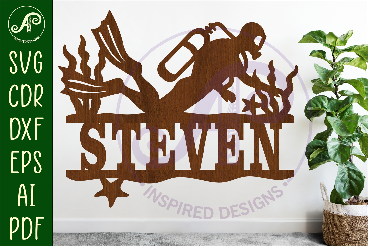 Male Scuba Diver Name Sign SVG, Diving Wall Decor Laser example image 1