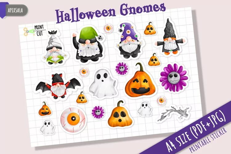 Similar Design Products to Cute Halloween Gnome Printable Sticker Collection
