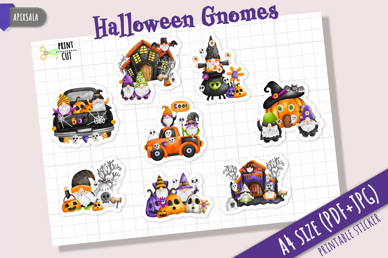 Similar Design Products to Cute Halloween Gnome Printable Sticker Collection