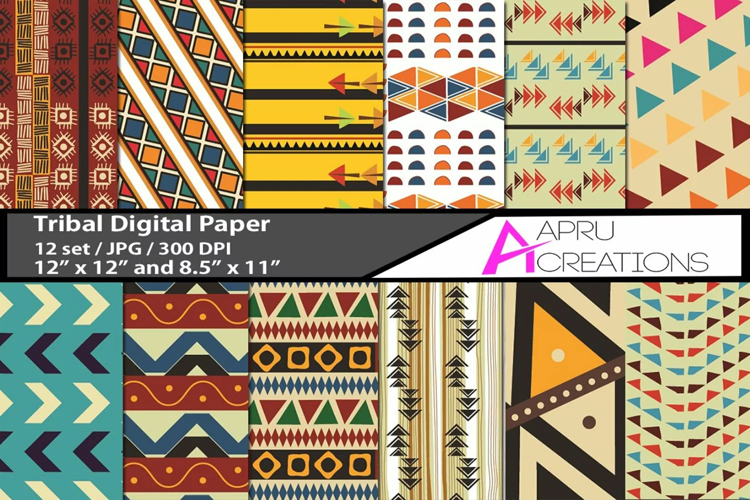tribal  digital papers, tribal pattern, digital papers, high quality 300 dpi, 12 x 12 inch , and 8.5 x 11 inch example image 1