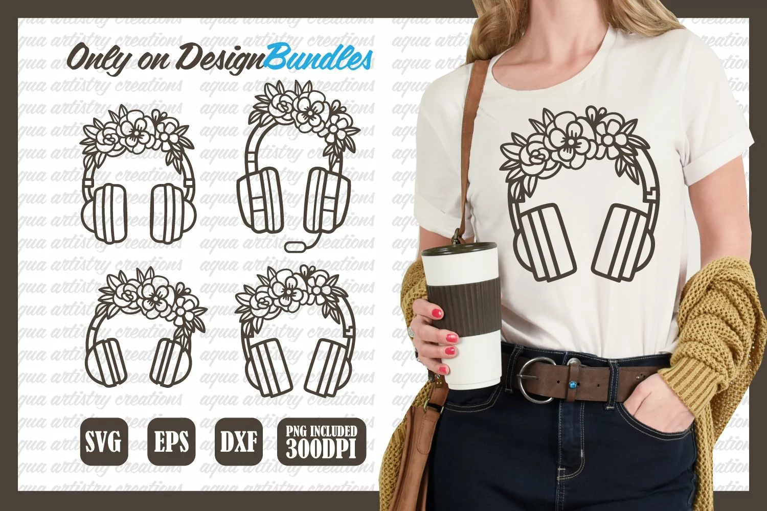 Presenting Floral Headphone SVG illustration Designs. This Can be used with the Silhouette cutting machines, Cricut, Lasercut Machines, or other programs/software that accept these files. Easy to cut using machines, Use directly on Shirts etc.