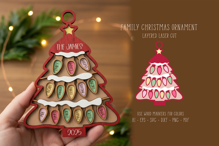 Family Ornament Christmas Christmas Tree Laser Cutting Laser Cut Glowforge Laser Cut Ornament Xtool Laser Cut Family Tree