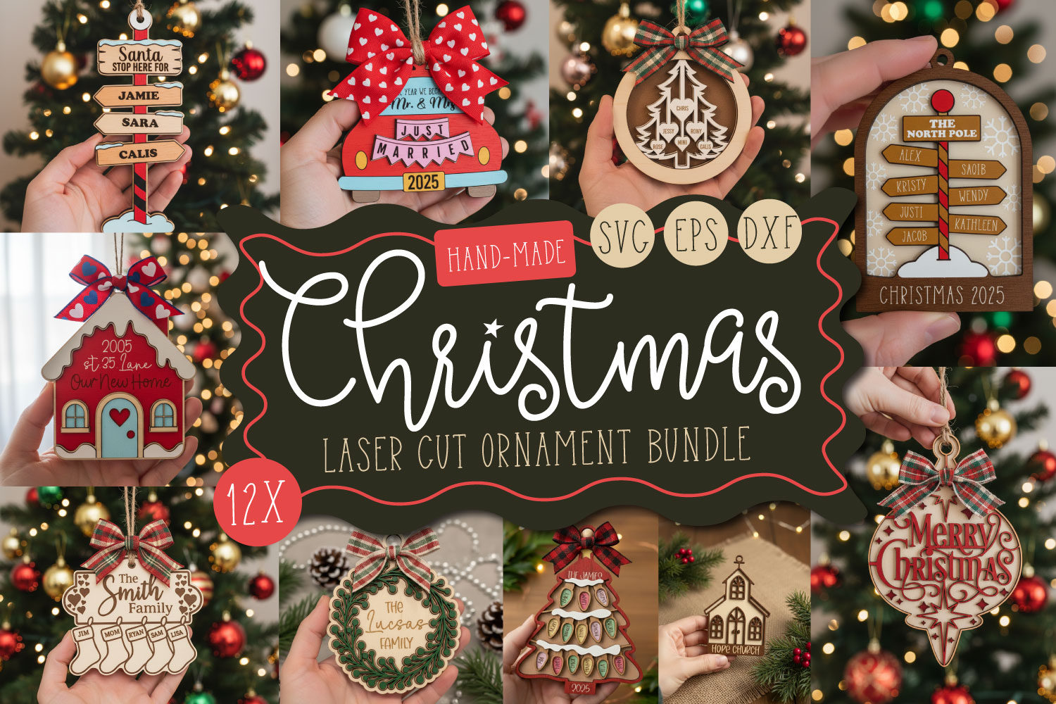 Hand-Made Christmas Ornaments Bundle 12x Laser Cut Designs example image 1