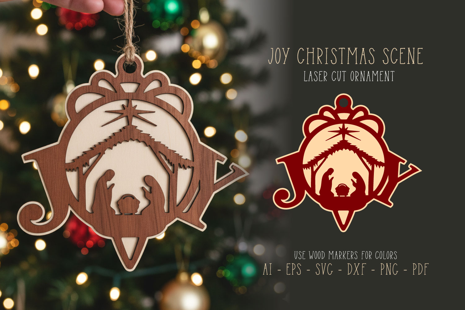 Ornament Christmas Joy Xmas Ornament Laser Cutting Laser Cut Glowforge Laser Cut Ornament Nativity Ornament Xtool