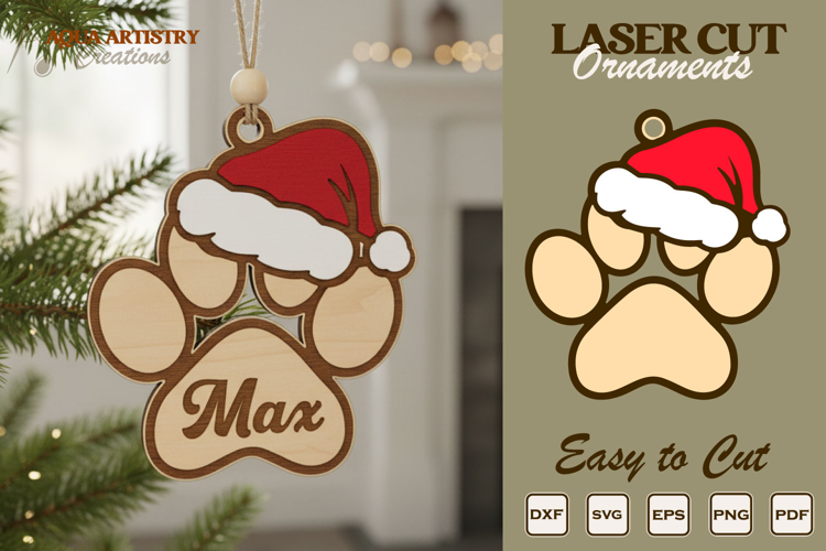 Paw Wearing Christmas Hat Ornament Laser Cut File Template