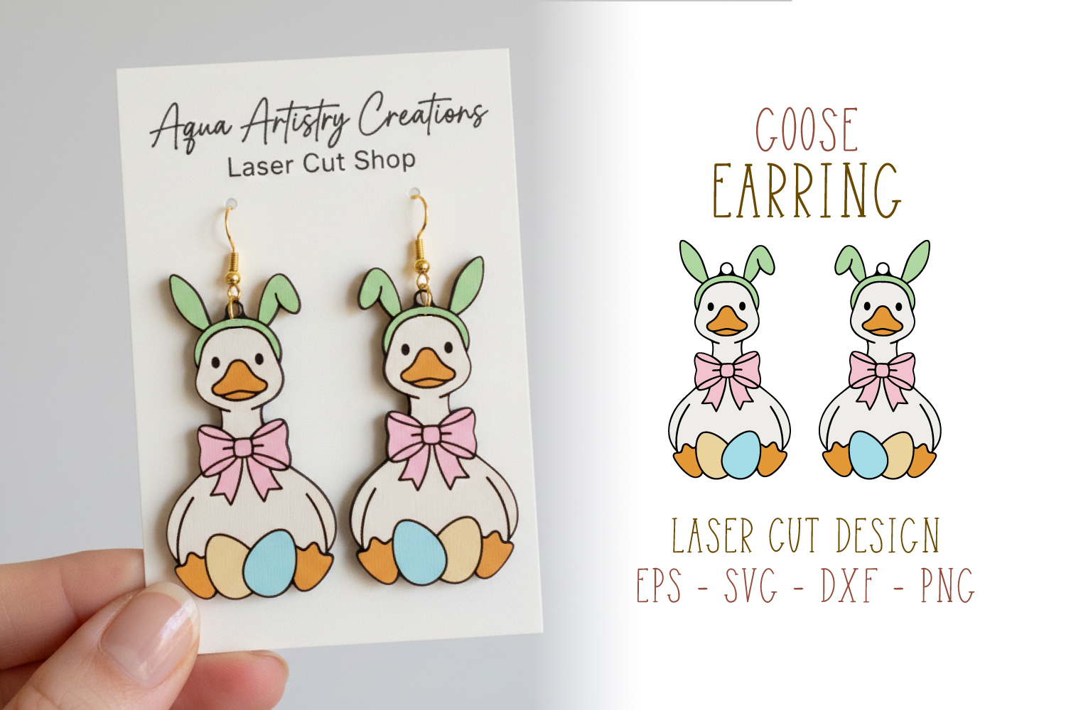 Easter Bunny Goose Earrings Laser Cut SVG Template example image 1