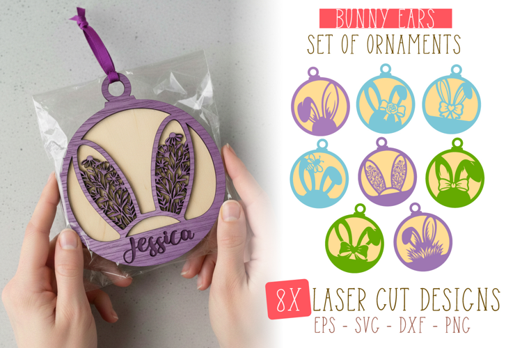 8x Easter Bunny Ears Gifts Laser Cut SVG Ornament Designs