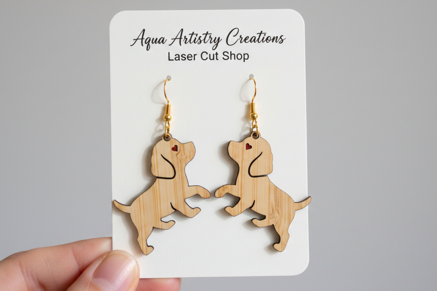 Cute Dog Earrings with Engraved Heart - Laser Cut SVG