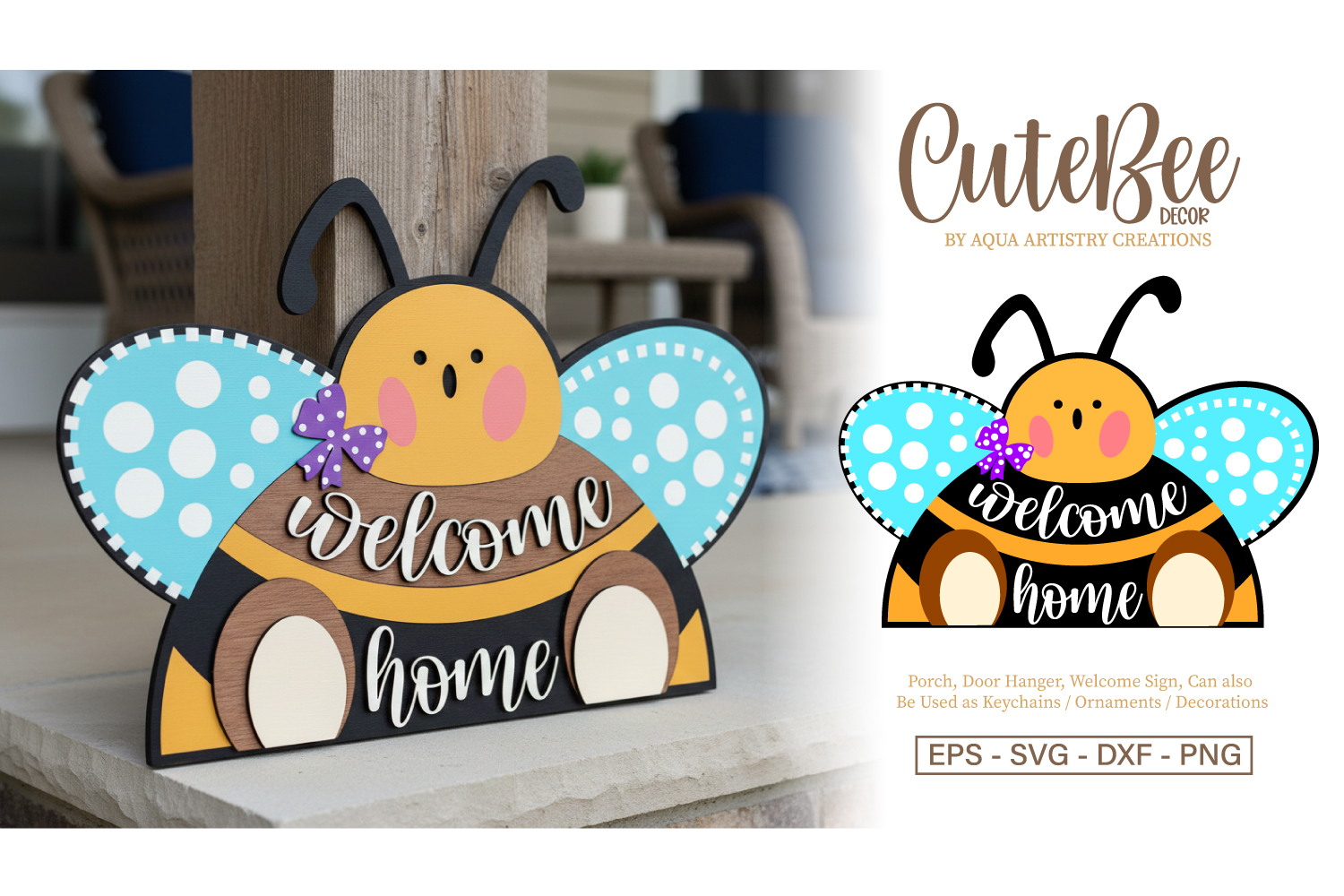 Layered Bee Welcome Home Sign Laser Cut SVG Template Design