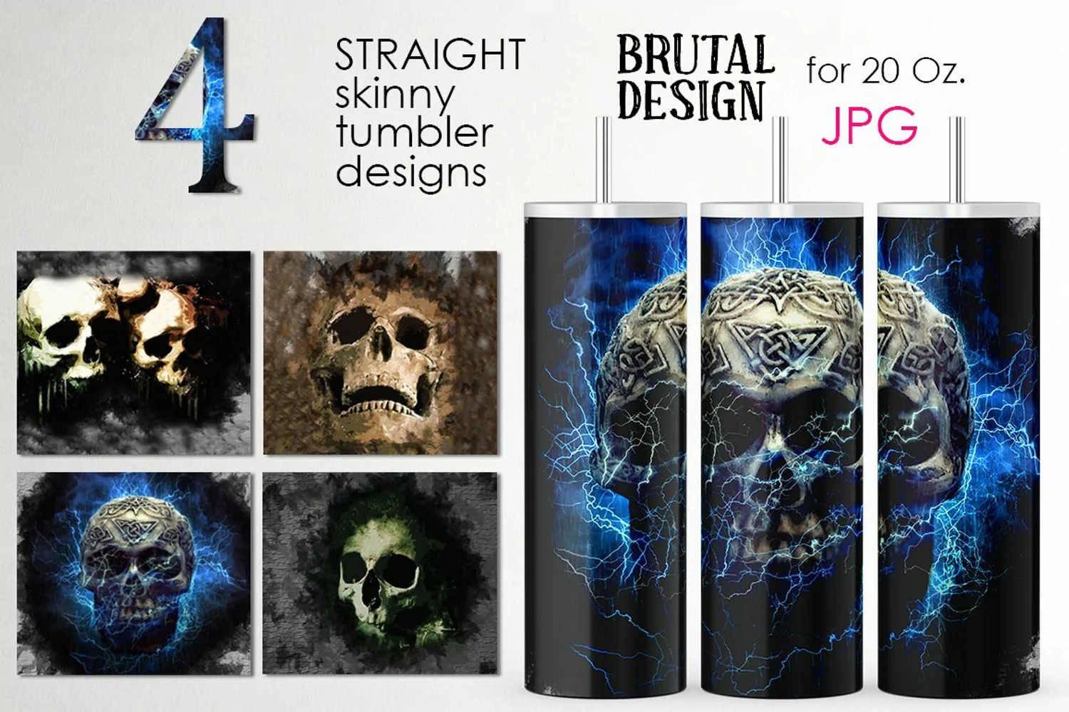 Gothic skull Skinny tumbler sublimation brutal design bundle example image 1