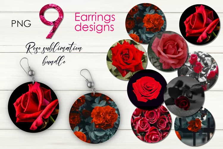 Create amazing sublimation crafts with beautiful Oil paint Rose design | Round earring sublimation bundle, PNG