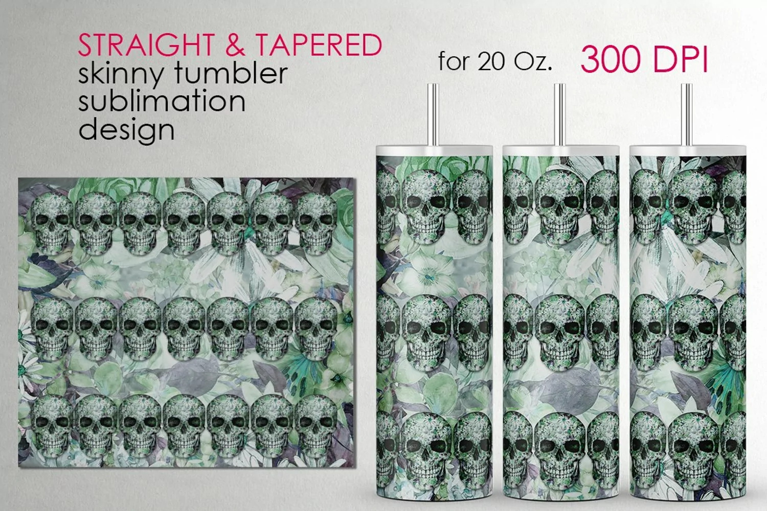 Gothic Skull and Flowers design | Skinny tumbler Sublimation example image 1