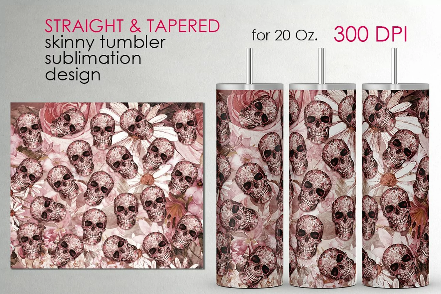 Gothic Skull and Flowers design | Skinny tumbler Sublimation example image 1