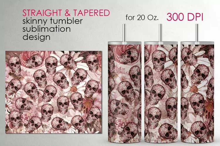 Create amazing sublimation crafts with beautiful Gothic Skull and Flowers design | Skinny tumbler Sublimation, PNG. This design is perfect for sublimation Straight and Tapered Skinny tumbler 20 Oz. You can add your own text or just use it as a ready-made design.