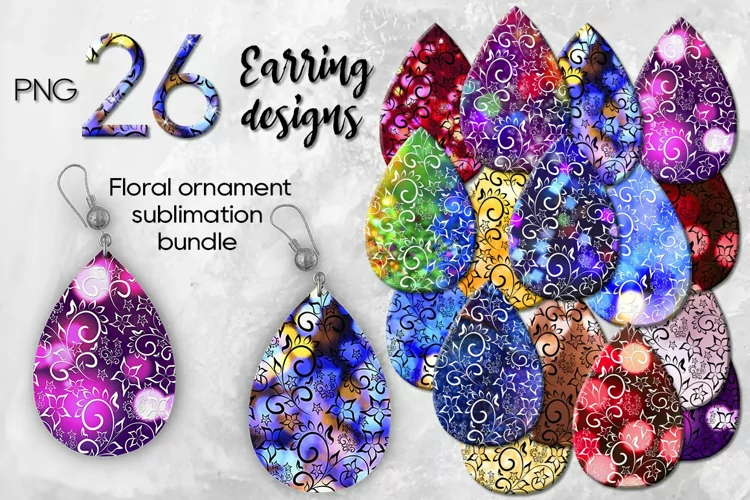 Create amazing sublimation crafts with beautiful Floral ornament | 26 Teardrop Earring sublimation designs, PNG