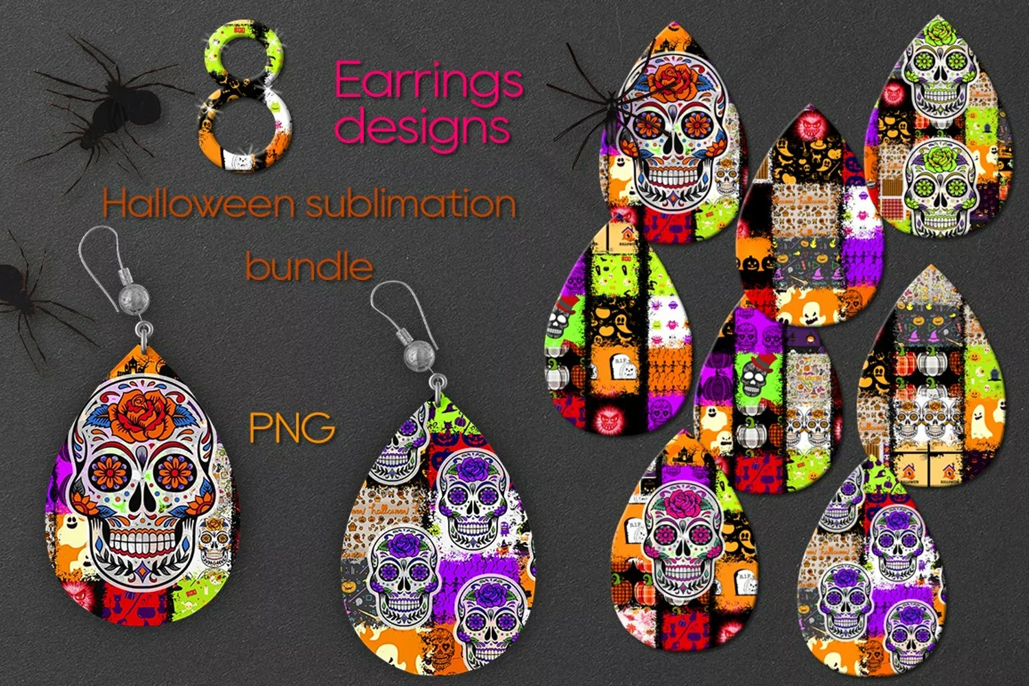 Halloween earring | 8 Teardrop earring Sublimation designs example image 1
