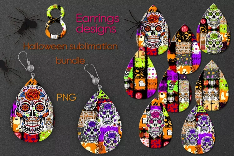 Create amazing sublimation crafts with beautiful Halloween earring | 8 Teardrop earring Sublimation designs, PNG