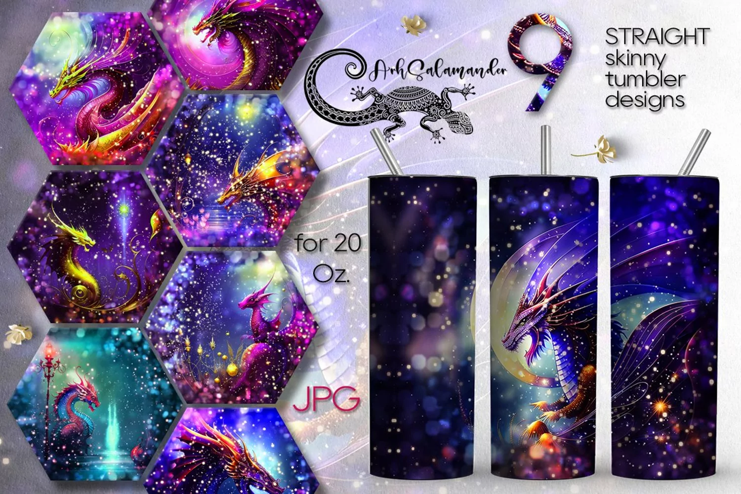 Create amazing sublimation crafts with beautiful Mystic dragon | 9 Skinny tumbler magic sublimation designs, JPG. This design is perfect for sublimation Straight Skinny tumbler 20 Oz. You can add your own text or just use it as a ready-made design.