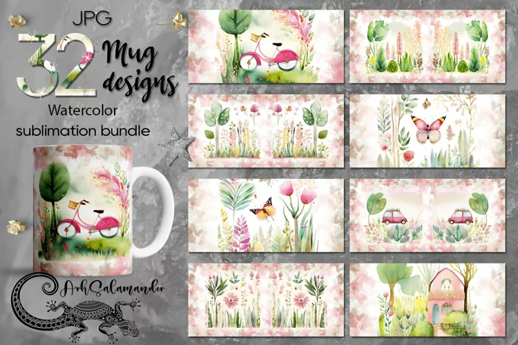 Create amazing sublimation crafts with beautiful Magic plants | 32 fantasy Watercolor Sublimation Mug designs, JPG. This design is perfect for sublimation Mugs 10oz, 11oz, 12oz. Suitable for mug sublimation machines like the Cricut mug press or other Mug Presses.