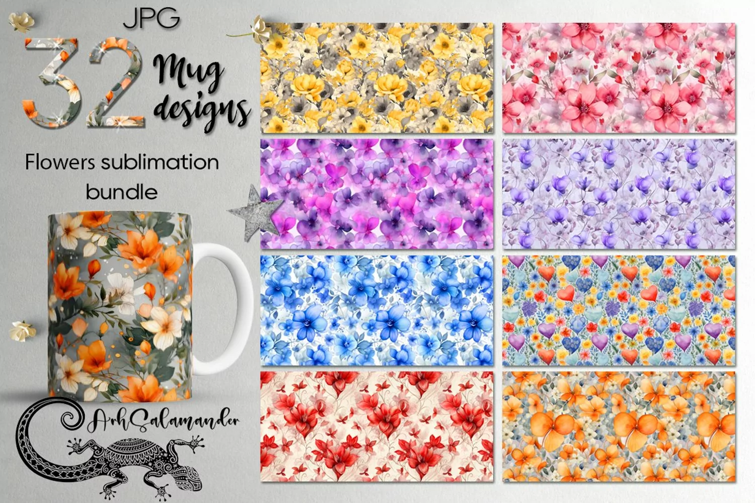 Watercolor Flowers | Mug floral Sublimation design Bundle