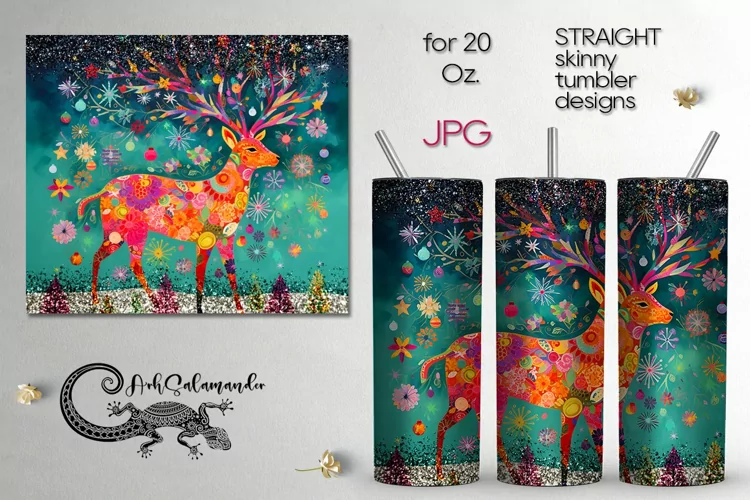 Create amazing sublimation crafts with beautiful Folk xmas Deer | Skinny tumbler sublimation design PLUS, JPG. This design is perfect for sublimation Straight Skinny tumbler 20 Oz. You can add your own text or just use it as a ready-made design.
