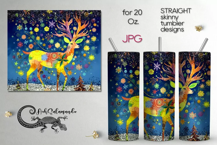 Create amazing sublimation crafts with beautiful Folk xmas Deer | Skinny tumbler sublimation design PLUS2, JPG. This design is perfect for sublimation Straight Skinny tumbler 20 Oz. You can add your own text or just use it as a ready-made design.