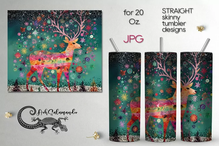 Create amazing sublimation crafts with beautiful Folk xmas Deer | Skinny tumbler sublimation design PLUS4, JPG. This design is perfect for sublimation Straight Skinny tumbler 20 Oz. You can add your own text or just use it as a ready-made design.