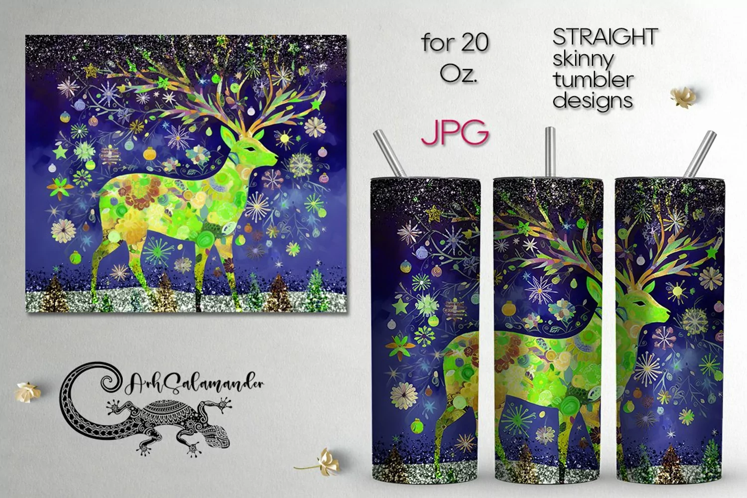 Create amazing sublimation crafts with beautiful Folk xmas Deer | Skinny tumbler sublimation design PLUS6, JPG. This design is perfect for sublimation Straight Skinny tumbler 20 Oz. You can add your own text or just use it as a ready-made design.